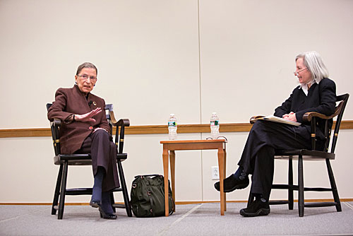 [Dean Martha] Minow inquired about collegiality on the court, which is often deeply split. Ginsburg responded that over the years her husband’s culinary skills have helped foster a friendly atmosphere. He baked birthday cakes for members of the court, she said, and catered their quarterly meetings.